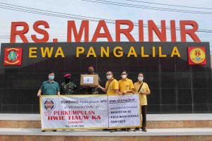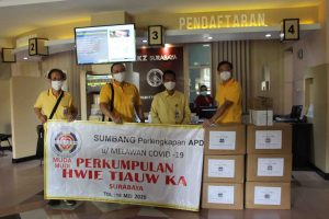 【泗水-本报讯】泗水惠潮嘉会馆为支持政府克服Covid-19疫情,给中华医院(RS Adi Husada),dr.Ramelan 医院, Brawijaya 医院提供防疫自我保护设备。 同时也给泗水市政府捐献洗手设备和粮包。