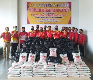 【棉兰-本报讯】苏北客属联谊会,包括Labuhan Batu 分会和先达分会,分别在苏北客属联谊会办公处 , Prapat Home Smart超市和先达 Sultan Agung 学院举办“关爱社会”慈善活动, 分发逾1000份爱心粮包。