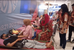 三宝垄华联与三宝垄市和Grobogan县的红十字会 (PMI) 输血单位合作定期举办的献
