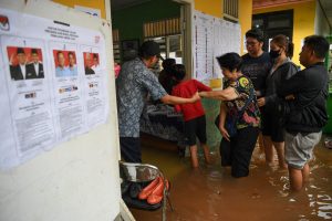 星期三(2月14日)投票日破晓前,雅加达下了彻夜的大雨,雷电交加,似乎在为这场关键的选举制造戏剧效果。到了原定开放投票的时间,雨势还未停歇,直到上午8时左右才减缓。