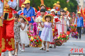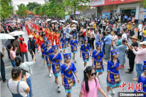 海南海口: 民众 “装军巡游”纪念冼夫人