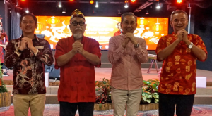 印华红白交流论坛(MP Forum Komunikasi Tionghoa Merah Putih简称Fokti)领导何传福牧师(Yohanes Handri)与秘书吴龙海(Aay Muliana)、副秘书徐道勇(Ayong)、财政熊新明(Bobby Maryadi)、其他还有西万隆县分会(KBB)主席陈天福(DR.IR Agus Sutanto,SH,MH,MM)与夫人阮燕琬、老子清真寺长老哈吉李国丁(Hj.Oting)、司仪陈仙蒂(Viivi)、吴国强(Albert Wu)等于日前欢聚商场礼堂举行以《蒙恩福的阴历年》庆春节活动。