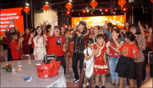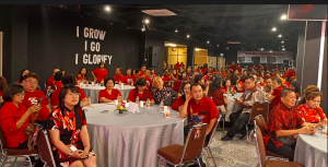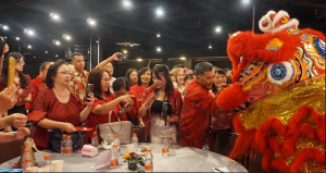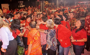现场布置红彤彤,还有一株挂满了红包的塑料腊梅树、约300名来自各方人士多数穿着红色的衣服,铿锵的锣鼓声和几只醒狮的跳跃舞动,孩子们的尖叫声,大人的欢笑声,使现场气氛一片喜洋洋,他们把已经淡出的新春年味,硬是拉回现场。