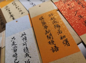 侯跃男制作的毛笔字书签。(受访者供图)