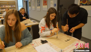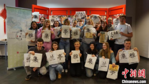 20位德国中学生来到柏林中国文化中心参加“兰亭·雅集”中国书法体验课。该活动是为弘