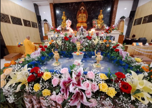 万隆万年堂于今年6月2日举办卫塞节庆典,恭请贤满法师主法。万年堂住持陈定玉优婆夷率众师姐各司其职在佛堂佛前进行浴佛仪式。约五六百名来自各庵堂寺庙、佛教团体、西爪宗教司代表及各地善男信女献插玫瑰花后进香,接着一起敬虔诵经并参与浴佛。