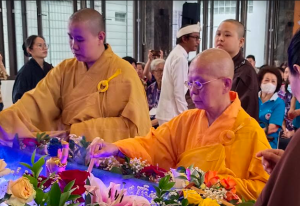 上午9时,卫塞节浴佛法会开始,由贤满法师在菩萨前跪拜、诵经、点烛、献花、洒净水礼等。浴佛前,由天佑法师短讲浴佛的意义:就是为了让每个人洁净身心灵。所以每个信众浴佛时都要以虔诚之心礼佛。