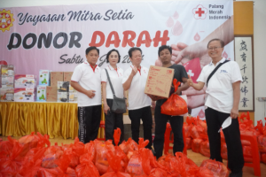“他们得救,我们健康”,为响应国家无偿献血的号召,呼吁人们积极参与无偿献血活动。6月15日上午,献血活动在三宝垄红十字协会与格罗波干红十字协会与新中校友会的共同努力下如期进行。与往年一样,献血的地点设置在新友社大礼堂。