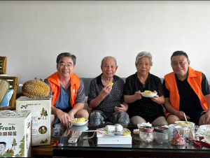 的榴莲被送到几位为社会做出突出贡献的侨界老人手中。
