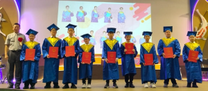下午中小学毕业典礼在颁发毕业证书的仪式中拉开序幕,陈丽华董事长和邱陈煜处长也在典礼上致词,祝福毕业生在面对困境时仍能心存善念,保持乐观积极面对之,同窗情谊永远存在,欢迎随时返校,时时记得自己是泗水台校的学生。校长杨顺富在致辞中,勉励毕业生们展翅高飞,世界之大任你翱翔,别忘了终身学习。