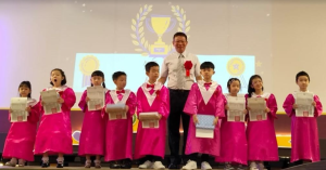 幼儿园毕业典礼全部学童参加,家长也非常热心参与,典礼中节目精彩除了有长篇的中文朗诵、歌唱也有幼童的舞蹈,展现泗水台湾学校的丰硕教学成果。王丽菁园长运筹帷幄掌握了整场,而老师们也尽心的设计各项节目让家长赞誉有加。