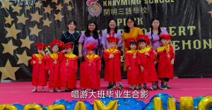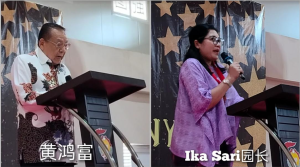 泗水開明三语学校唱游班和幼儿园园长Ika Sari说, 今天的毕业典礼也是学生带来文艺演出的一个好平台。 唱游班、幼儿园和小学部的学生,他们将分别带来精彩文艺表演。 此外,Ika园长也感谢各位家长、嘉宾以及 赞助商一如既往的支持与爱护。孩子们在唱游班和幼儿 园生活的点点滴滴,对每位学生来说都是人生最难忘的 回忆,因为他们在这里学会了如何爱,也学会了尊重老 师、同学和父母。