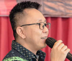 义守大学孙志彬博士致词:“感谢徐晋鸿主席。本校这次课程主题:生成式AI创作新媒体。1.生成式AI创作新时代。2.学会运用AI创作音乐3.学会运用创作动画。希望学生喜欢每年都可以來跟学校学生们一起交流。