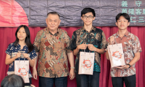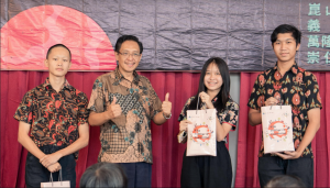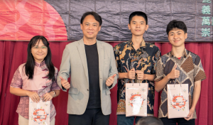 崇仁三语学校高中校长李韬权致词:“我谨代表本校感谢台湾昆山科技大学及义守大学领导以及学生团队大老远地来到万隆把新科技教给本校学生。去年举办过,这是第二次,让本校中学生获益匪浅。我们希望明年还会有并带来更新的高科技,或者有另外的台湾高校参与举办,让我们之间有更多的交流。