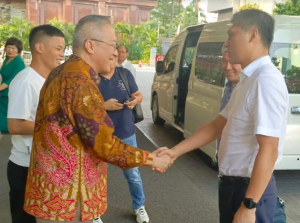 (雅加达讯)赣州市邹治宇副市长率领的一行17人代表团,包括赣州市交通运输局谢文才局长,安远县委县委书记杨有谷,赣州市商务局二级调研员陈晓峰,赣州市贸促会办公室主任丁祖源等企业家,2024年8月6日(星期二)下午4时30分走访印尼中华总商会,受到总主席张锦雄,秘书长周维樑,副总主席连介豪、陈新,名誉主席吴明理、郑昆龙等理事,以及Star Vo运营总监王琳的欢迎。