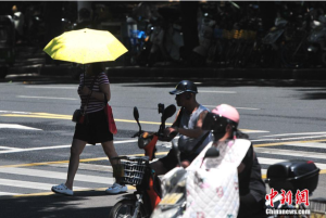 资料图:烈日下出行的人们。中新社记者 张斌 摄