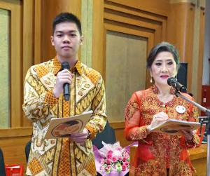午后5时,研讨会由司仪叶桂香(Lita D)和伍原昌(Edward)以印中双语主持。首先有请全体赴会者肃立齐唱国歌《大印度尼西亚》。还有竹筒乐队演奏、独唱等助兴。