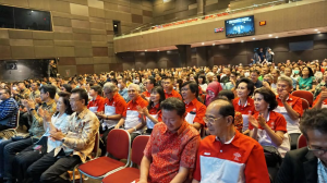 西爪华总秘书长吴汉伟(Willy P)代表不克分身来参加的何亮宽会长(Leon Hanafi)先介绍华裔总会,而后诵读演讲稿:“感谢筹委会同仁和我们西爪华总合作举办网络安全研讨会。我们的团结合作、毅力和坚强,使有500多位参加研讨会嘉宾,感谢希望之曙光教会执委同仁提供设备齐全的场地。祝贺一切进行得顺畅,成功结束。