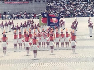 1996年底,李光明校长接任金门高中时,经费有了着落,我们再次启航台北,加入了台北乐仪队观摩赛,在表演后还有机会游行台北中正纪念堂周围,沿路挤满围观人群,大家争睹来自金门的乐仪队,在步履中、在枪影、乐音中,担任指挥刀的精彩操演,更是获得大家的青睐,窝心的是学长、姐专程跑来关怀、助阵,那份情谊感动了同学们,心温暖!