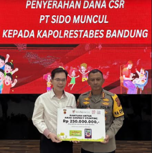 Sido Muncul,财务总监Budiyanto 象征性地将价值 2.5 亿盾的现金援助移交给万隆警察