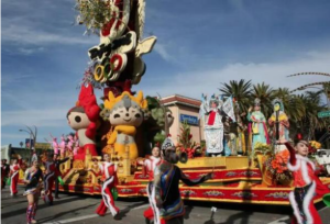 迪纳新年玫瑰花车游行活动。“这是美国规模最大的花车游行之一,每年1月1日