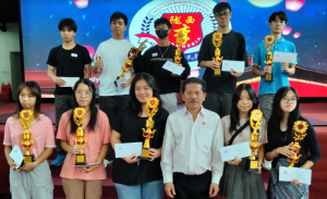 祭祖礼毕,颁发奖杯和红包给在校读书成绩优异的儿孙后代,鼓励他们再接再厉,争取更好的成绩,迈向光明美好的前程。(小草供稿)