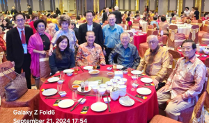 (雅加达讯)印尼梅州会馆和雅加达客属联谊会庆祝中秋联欢晚会及青年中华才艺竞赛,2024年9月21日(星期六)晚上6时起假座雅加达金莎酒楼宴会厅隆重举行,印尼客属联谊总会总主席叶联礼,监事长李世镰,雅加达客属联谊会张和然主席,印尼梅州会馆江淼成会长等理事及客属乡亲出席盛会,大家集聚一堂、共享中秋佳节。