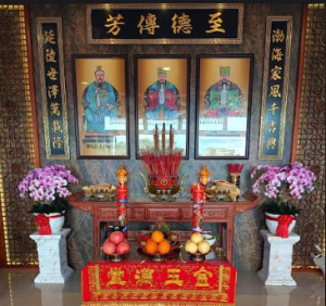 虔诚之心祭祀堂上主祀吴姓始祖至德三让公泰伯公,附祀传代祖恭孝王仲雍公、继世祖延