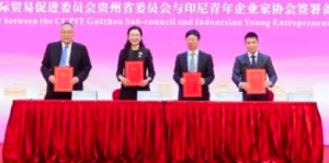 在签约仪式上,峰会秘书处与印尼青年企业家协会签署了合作备忘录,贵州省贸促会与印