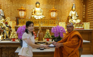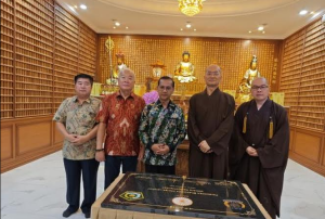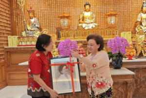 定盛法师代表、印尼佛教阿弥陀佛基金会主席王金福、顾问许合德,