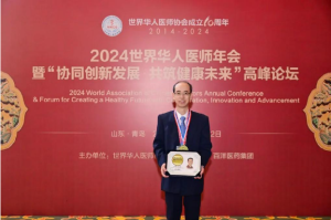 图为王焕友于2024年9月获第七届“世界杰出华人医师霍英东奖”。(受访者 供图)