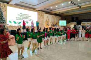 上午11时,活动正式开始。首先, 泗水惠潮嘉会馆妇女部主任翁玫娟对理事和妇女成员的到来表示欢迎 与感谢。她说,感谢上帝赐福,大家能欢聚一堂庆祝圣诞节, 并参加银会活动。希望通过此活动,可增进彼此的友谊和联系。