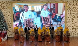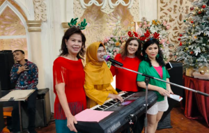 致辞后, Ruth修女带领大家一起祈祷,然后齐唱《平安夜、圣善夜》。 节目间隙,泗水惠潮嘉会馆妇女部不忘公益, 并向盲人儿童教育基金会赠送善款。另外,妇女部理事Lucia Theresia向两位修女赠送善款。