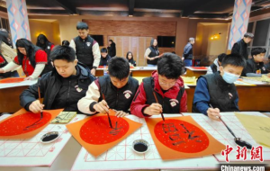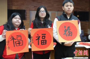 青少年,学习了书法课程。图为营员们展示自己手写的“福”字。莫伟雯 摄