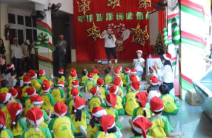 除了熱鬧有趣的公益活動外,教室裡的聖誕老公公送禮物、甜甜