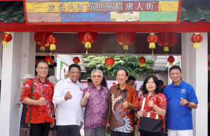 在民众的簇拥下,阿伦伯一行参观了苏甲巫眉印尼华人博物馆和由客属兼百家姓领导胡庆祥先生创立的唐人街。一路上民众都争相与阿伦伯合影,让他寸步难行,但他没有不耐烦,还是很和气地与他们合影。(小草供稿)