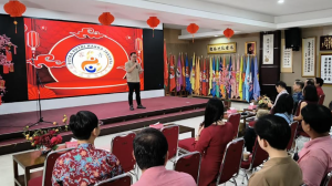 雅加达客属乐龄学院院长叶纪鳌上台致词,希望能继续合
