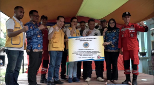 来到现场视察并参与活动的有牙律县政府领导甘达先生(bp Ganda PE)、默卡尔姆克迪区长、布鞥布朗区长、古纳默卡尔村长Evi Eriyani、加伽巴亚村长Yayan Suryana、布鞥布朗军区军长Bp.Cacu、负责社区安全和秩序警员、狮子会307 B2/1区会长白嗶勇(Yudy Tjahjo P)、这次项目负责人陈桂月(Stella Perwitasri)、第一区负责人伊尔万迪、垂直救援指挥官德迪(Tedi Ixdiana)及成员、狮友们。