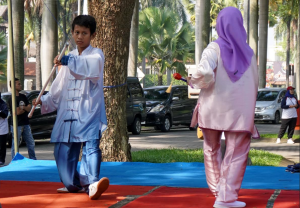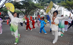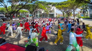 2025年4月27日星期日,东岳太极拳协会西爪哇分会(ADYTI Jabar) 在西万隆县(Kab.Bandung Barat)巴拉喜阳安新城(KBP)的巴雷巴列(Bale pare)广场以《同一个世界,同一个气息》为题,演练太极拳庆祝太极日。