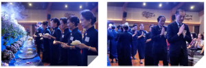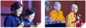 午后1.30时,万隆慈济负责人李铭秀师兄、郭贤锦师兄、萧炯章师兄、林德焕师兄、众师兄师姐及志工们、 佛教代表们、福清同乡基金会理事会主席纪传坚、第一常务副主席王湧、理事黄宣梁、林丽英、郑珠宋、郭为玲等、闽南公会理事陈威莲、印尼佛教理事会(MBI)会长陈柏安与夫人彭秀杏等、印尼万隆台商会理事长陈明山伉俪及理事、万隆三轮慈善关怀基金会领导柯百观伉俪等,约六百位在四楼大礼堂同心祈福,传递善念,广结善缘,祈愿世界平安无灾。