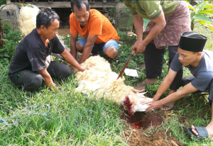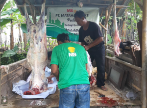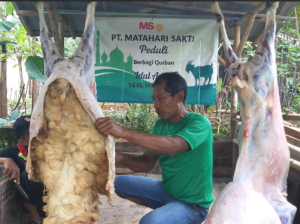 此次援助旨在迎接回历1446年宰牲节,班贾尔萨里村及周边社区的许多居民都认为受益匪浅。此次,PT Matahari Sakti公司捐赠了两只祭祀山羊,并在当地社区协会(RW)主席的院子里宰杀。