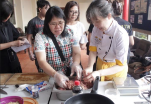 渤良安烹饪班于今年2025年7月3日开始,在百氏祠凉亭长廊举行烹饪课程。首节课程教学的是粤菜系潮汕牛肉丸。这道菜是潮州的传统主食。潮州牛肉丸的独特之处在于其混合馅料:牛肉末与香料的完美结合。传统做法是用捣肉棒捶打牛肉,使肉筋断裂,从而打造出弹性十足的口感。据信这道美食是由客家移民带到潮汕地区的。