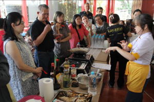 主厨首先示范醋糖调制的酸甜酱汁,并很详细、逐步地讲解,也让学员品尝酱汁的味道。最后让学员带回一小食盒饭菜,可以在家细细咀嚼,以后自己下厨就知道正确的味道或者自己调试适合自己家人的味道。