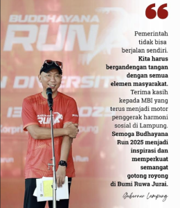 本次活动由印尼佛教徒大乘佛教协会(MBI)联合工作小组(Sekber MBI)主办,携手Run Way活动策划公司共同执行,并获得了楠榜省政府、楠榜省宗教和谐论坛(FKUB)、众多捐助者及志愿者的全力支持。备有诸多幸运奖品,以其最珍贵者:Polytron电动机车、Samsung Galaxy A06手机、Redmi Watch 5、电视、洗衣机等。还有,这次长跑盛会也得到楠榜武术协会及龙狮团队的助兴,增添更亮丽光彩。