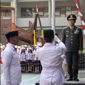 升旗礼由刘炳顺准将(Brigjen.TNI Jonny)担任司礼官。在全体注目下,印尼红白国旗冉冉升起,飘扬于空中,现场爆发出响亮的“Merdeka!”(独立)欢呼声。随后,全场默哀,缅怀为独立献身的先烈,学生合唱团以悠扬歌声寄托哀思与敬意。仪式还包括学生代表宣读1945年宪法及刘炳顺准将诵读《独立宣言》。