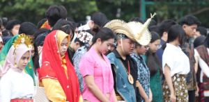 为纪念第97届青年誓言日, 泗水大学全体师生于2025年10月28日星期二在泗水大学滕吉 利斯校区的升旗仪式上统一穿着传统服饰。