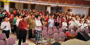 庆祝会于午后4时开始,由宋玮玲传道以华语,梁凤璇姐妹翻译印尼语,主领敬拜程序。竹筒琴乐队首先献奏几首颂主歌曲,悠扬乐声中拉开庆典序幕。随后,会众共同诵读以赛亚书9章2-6节的启应经文,佳龄诗班献唱圣诗,并以一首《轻轻听》作为开唱歌曲,预备心灵聆听信息。